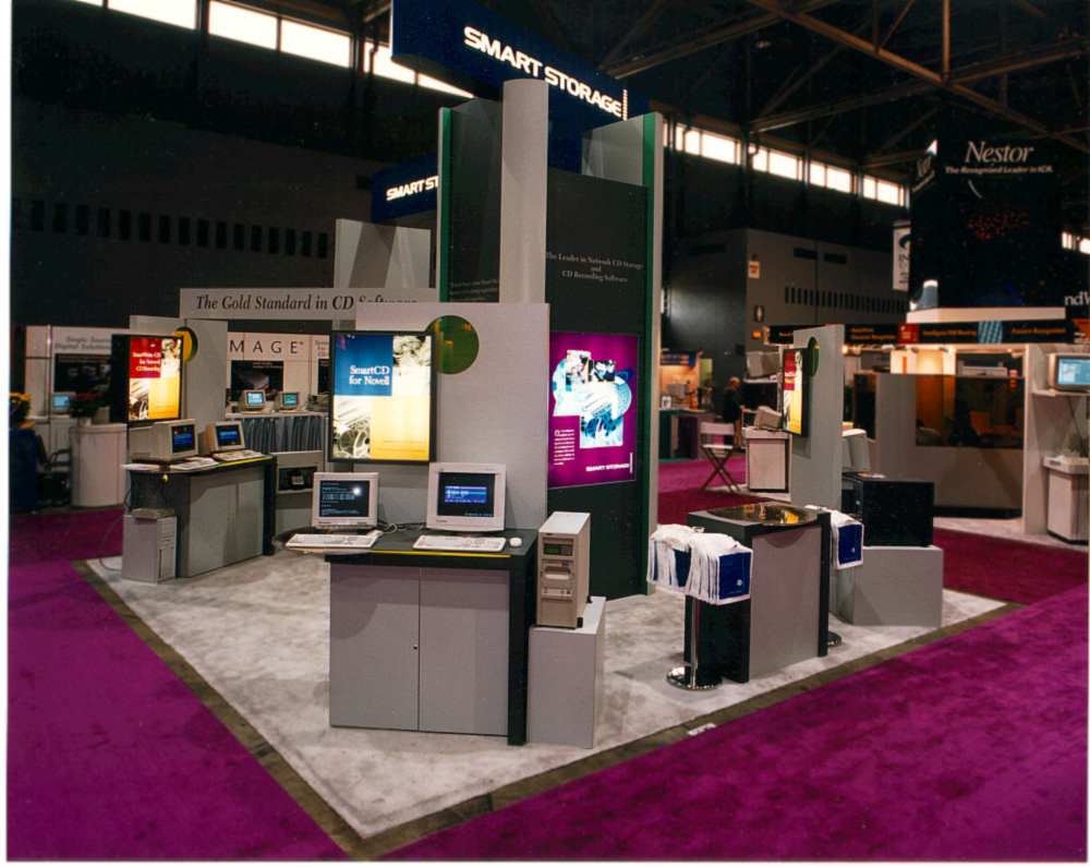 The most challenging of my trade show responsibilities was when I was handed the task of managing the construction of a new trade show booth. My prior experience at UMass Physical Plant, design ability, knowledge of materials, and attention to detail made me the natural choice to manage the new booth's construction and in 1995 it was completed. At a cost of just over $40,000 we were able to build a stylish 20' x 20' booth that continued to be used after my departure. The booth was built in such a fashion that it could be adapted for use in a 10' x 20' space. We could even send two 10' x 10' configurations to two separate shows.