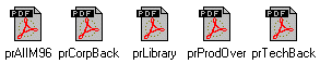 Press releases/press kits. All company press releases during this time were my responsibility. Our PR Manager was part-time, so I frequently interacted with members of the press to promote the company's presence in our industry. I handled each press release from writing to production to delivery, by email or hardcopy. After the company hired a PR firm, The Neva Group, we didn't care for their treatment of our press releases, and so my writing duties continued until later in 1996 when Smart Storage hired a full-time PR manager. At right are links to PDF versions of several press kit documents I wrote, including the official Corporate Backgrounder, Technology Overview, Product Overview; and press releases for the 1996 AIIM Show and the release of the SmartCD LIbrary product.